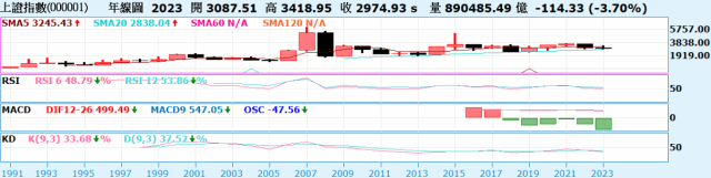 以月線來看,上證指數本月累計跌1.81%、深證成指跌2.08%、創業板指跌1.62%,月線連五黑;科創50跌1.58%、月K線連九黑。以季線觀察,上證指數本季累計跌4.36%、深證成指跌5.79%、創業板指跌5.62%、科創50跌4.03%,季線皆呈連三黑。而以年線來看,上證指數今年累計跌3.7%、深證成指跌13.54%、創業板指跌19.41%、科創50跌11.24%。